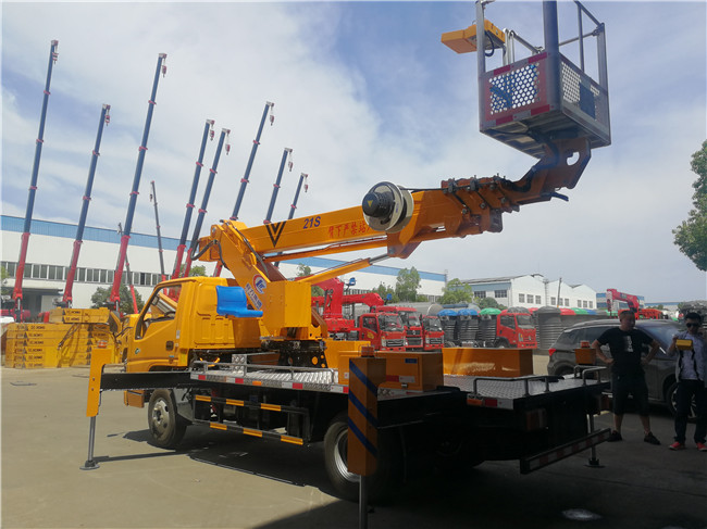 江鈴國六曲臂高空作業車-三節折臂高空作業車(藍牌):采用國六江鈴雙排底盤,工程黃,雙排駕駛室,軸距3360,國六排放標準,江西五十鈴115馬力發動機,帶ABS,放向助力,7.00鋼絲胎,空調,電動玻璃,中控鎖,多功能方向盤等國六標配。作業高度13.5米,工作斗限載200kg,液壓360度全回轉,三節折疊臂,單液壓舉升缸,雙向平衡閥,電控操作舉升臂,1噸可伸縮吊鉤可伸縮1米,四支液壓油缸可調試支腿,帶雙向液壓鎖。