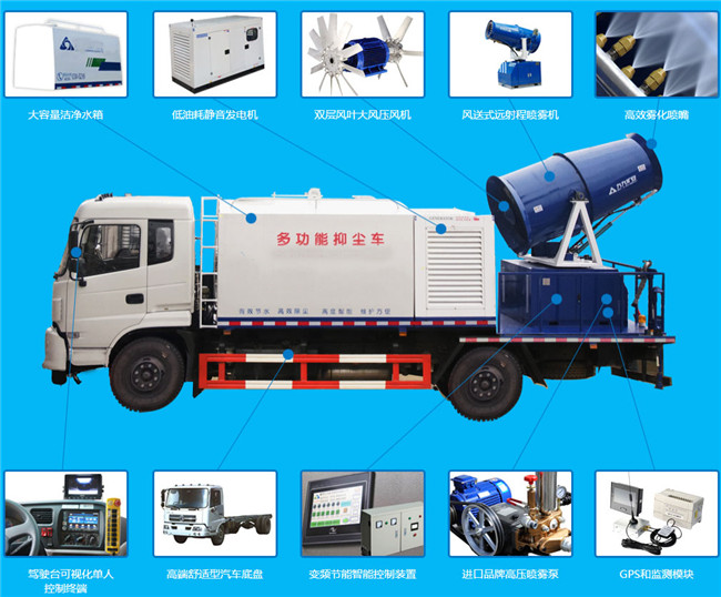5方抑塵車與5方灑水車的相同之處是共同具有灑水車前沖、后灑、側(cè)噴、高射炮、花灑等功能,不同之處在于抑塵車采用方形罐體設(shè)計,公告重量不超重,大平臺帶30米霧炮,用抑塵車公告。同時抑塵車在疫情期間可進(jìn)行噴霧消毒,可輕松實現(xiàn)一車多用。
