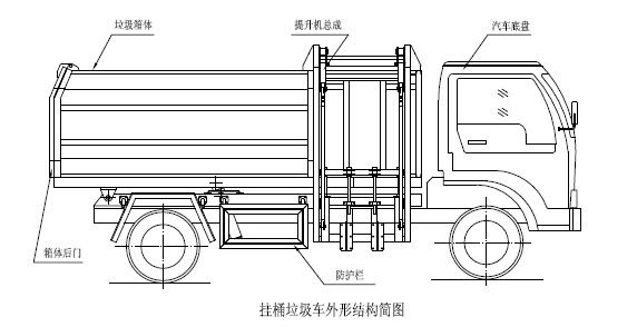 一、概述程力專用汽車掛桶式垃圾車(以下簡稱垃圾車)是用于城鎮內的垃圾收集、轉運、卸料作業的專用車輛。該車是由汽車底盤、自卸油缸、提升機總成、頂蓋(選裝)、附車架、垃圾箱體等組成。該車操作由液壓控制系統來完成,控制方式可以為手動或電氣控。該車主要用于城鎮垃圾的垃圾收集、轉運和卸料。操作開提升控制閥將垃圾桶隨提升機向上升起并翻轉傾斜,桶內垃圾被倒入車廂內完成垃圾單次裝載,反向操作提升控制閥,垃圾桶隨提升機而放下;完成垃圾裝載后再進行傾卸時,操作自卸控制閥,垃圾箱繞后翻轉軸傾斜體舉,箱體后門打開,垃圾傾卸出箱體;起該車由液壓控制系統來完成該車的提升機的上升和下降及垃圾的自卸功能,降低了工人的勞動強度和改善了工作環境。該垃圾車的收運方式是目前國內泛采用的垃圾收集轉運方式,其專用裝置的功能均以汽車發動機為動力,通過液壓機構手動或電控、氣控來實現。車輛的箱體采用優質炭鋼板全密封焊接結構,具有強度高、重量輕,防塵、防溢不產生二次污染等優點。垃圾車整車基本性能與原底盤車相同,用戶請參閱原底盤車使用手冊。本用說明書僅介紹專用改裝部分的有關操作、檢查和維修保養。在使用車輛前,我們強烈要求您能夠通讀本說明書,并對其中的操作程序做到得心應手。我廠對產品將會進一步改進。產品的改進、性能的提高、結構的不斷完善恕不另行通知,從而有某些說明不適用于您的特定車輛,敬請諒解。